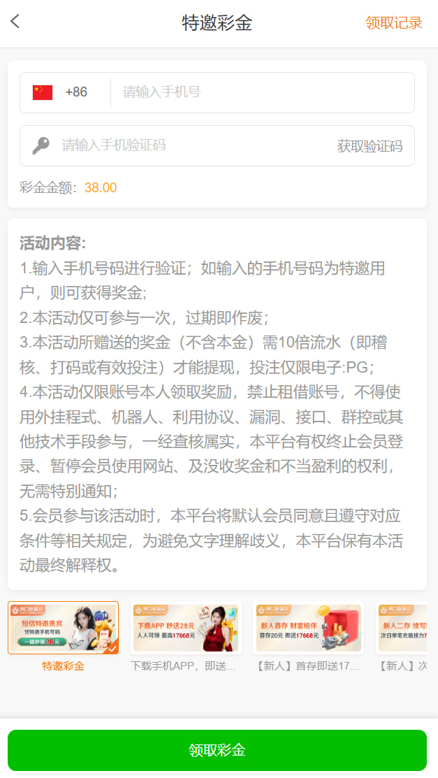 这台子神奇的很,送的38彩金要求打380流水,取款限制380,十倍流水十倍盈利,我最高打到88,吃光了,自己充值打,最高也是88,吃光,又上,打回本了提款,很难。