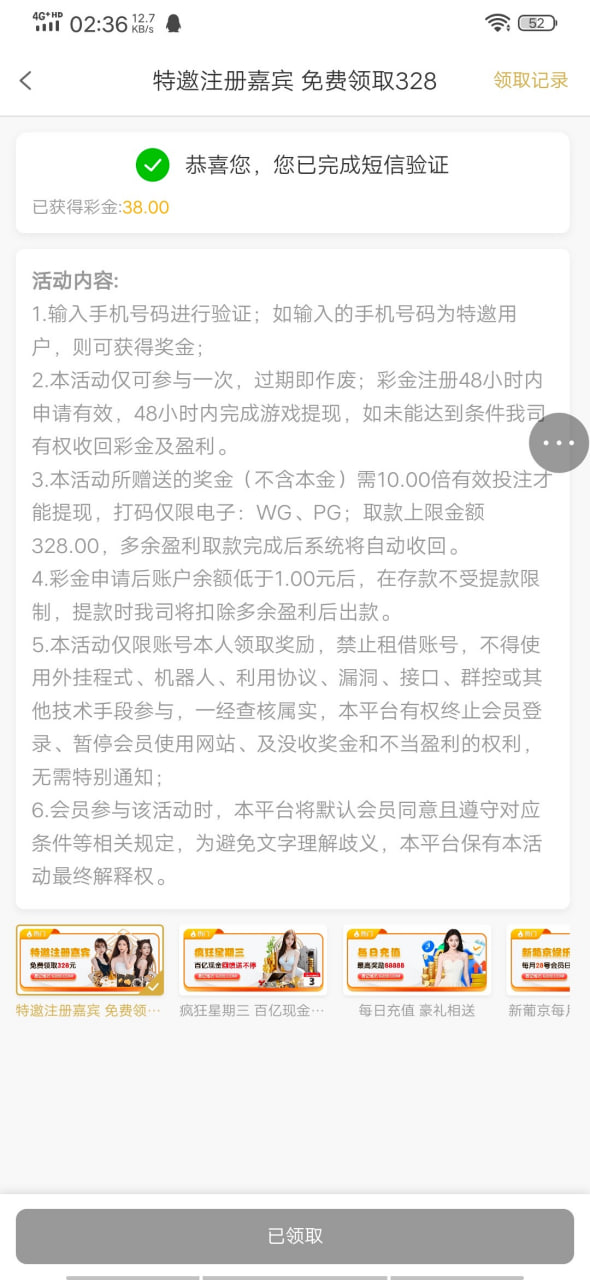 新用户注册绑定信息,自助碰瓷特邀,禁止充值!