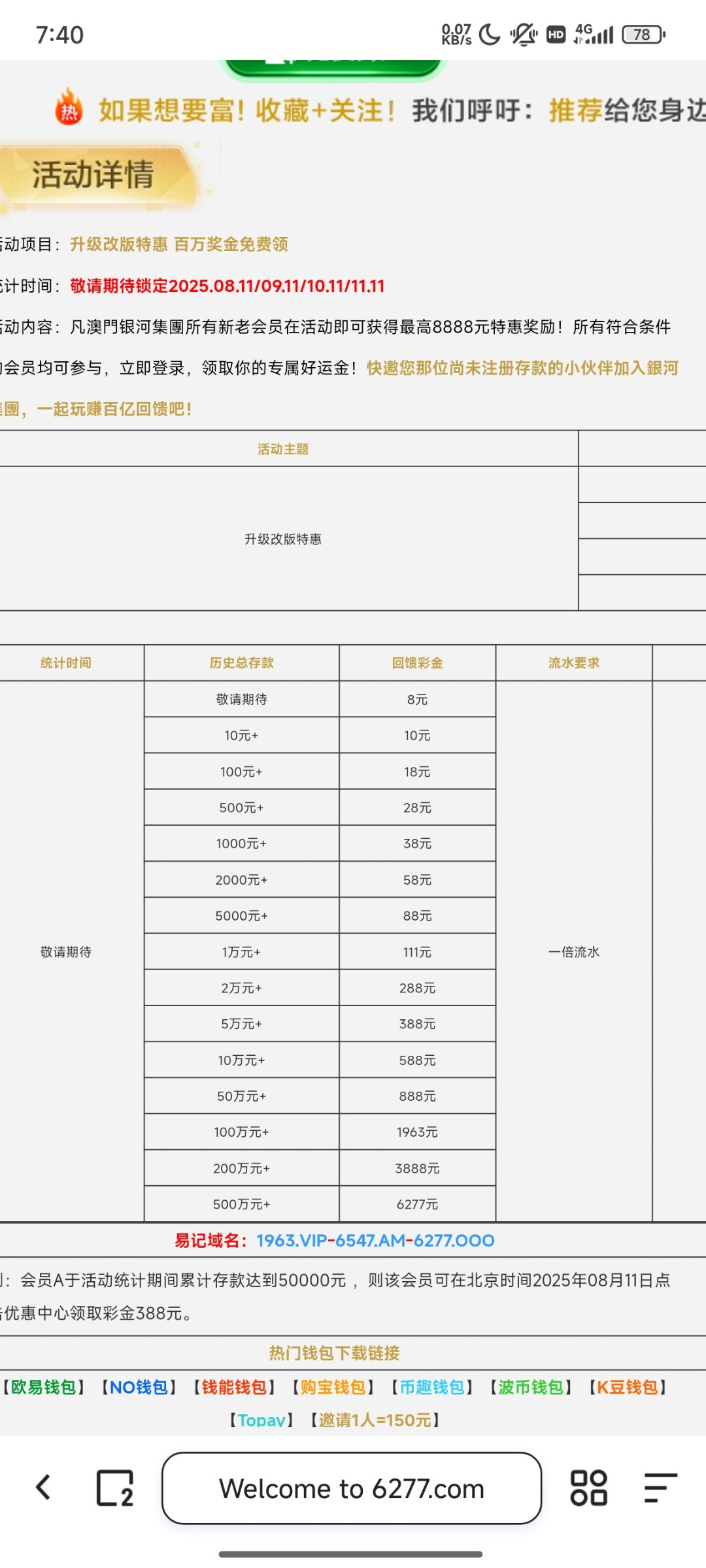 澳门银河历史回馈 6277.com 就分享 别充值