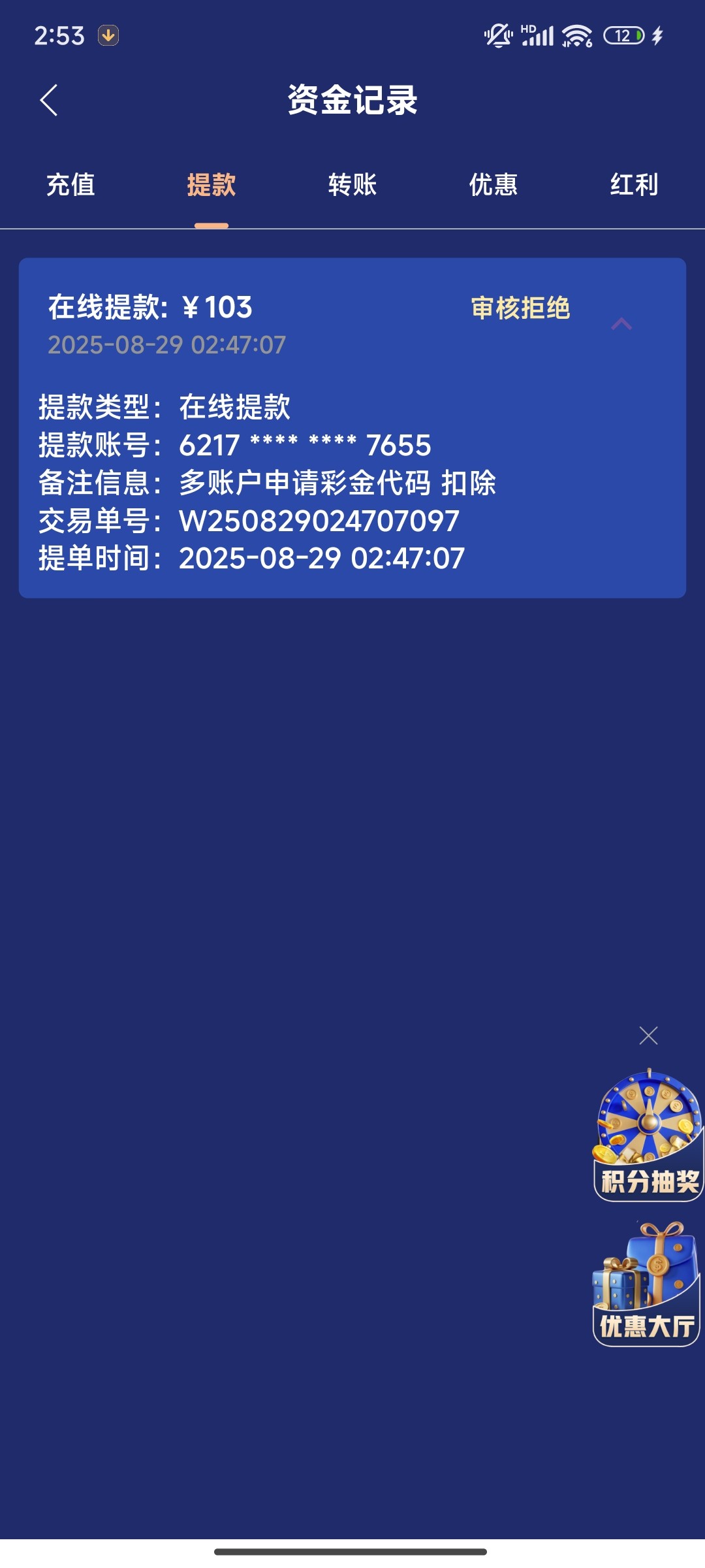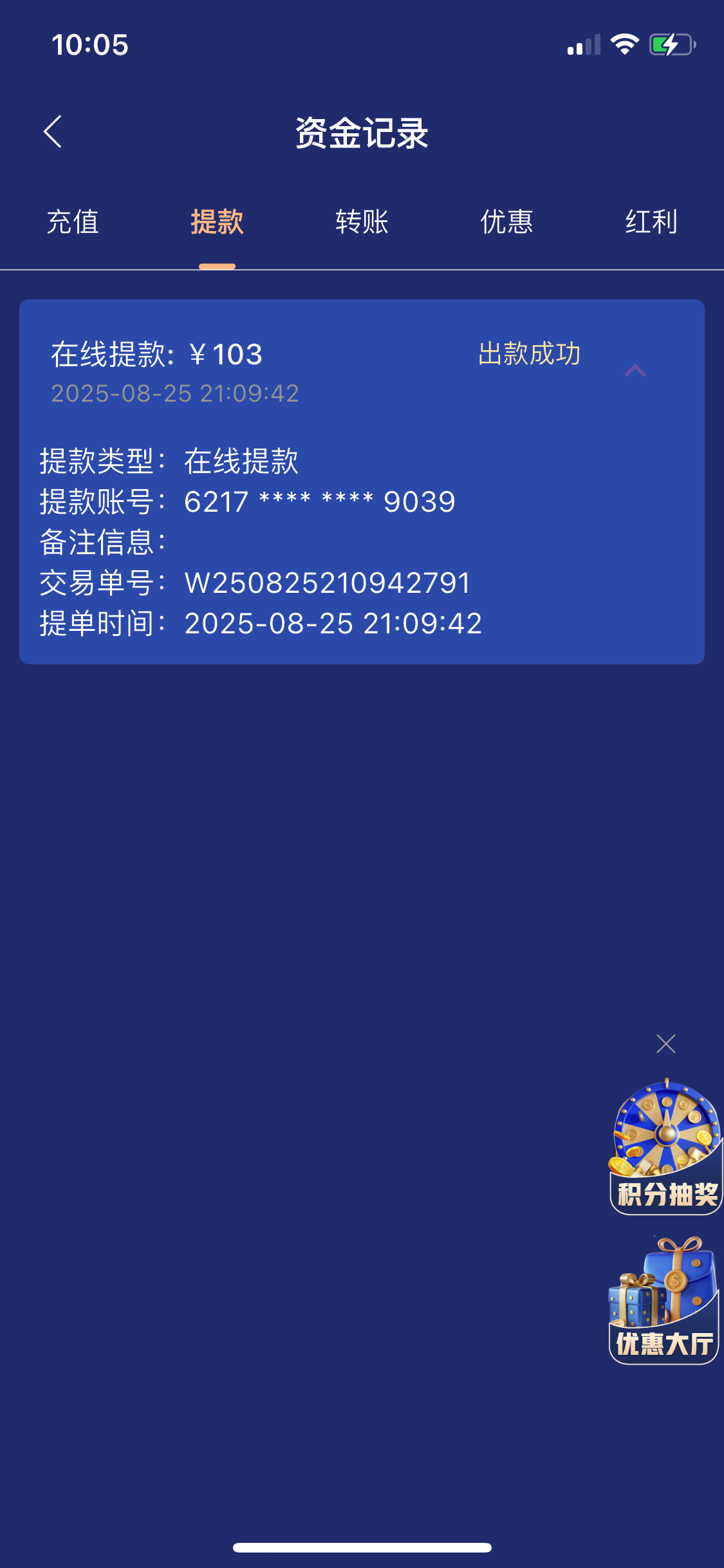 @故人 ,打4万都没用,只能提100块儿。