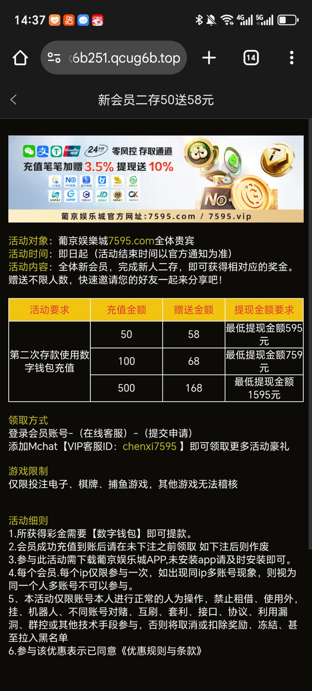 注意是二次充值参加 平台最低冲10