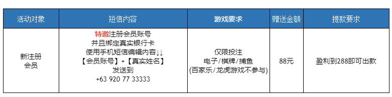 新用户注册绑卡,完善信息,按照活动要求给指定号码发送短信,特邀碰瓷!88/288出款!详细看活动或咨询客服!