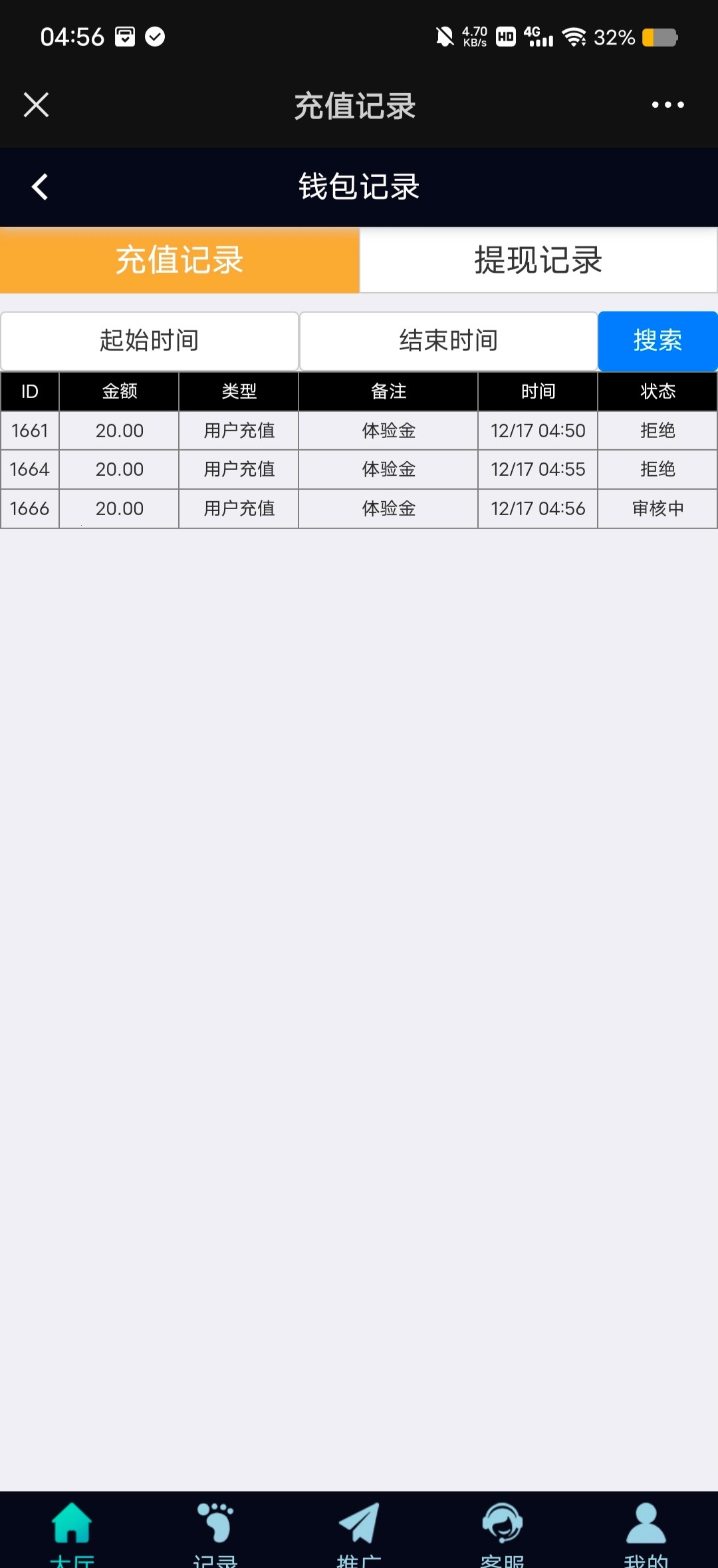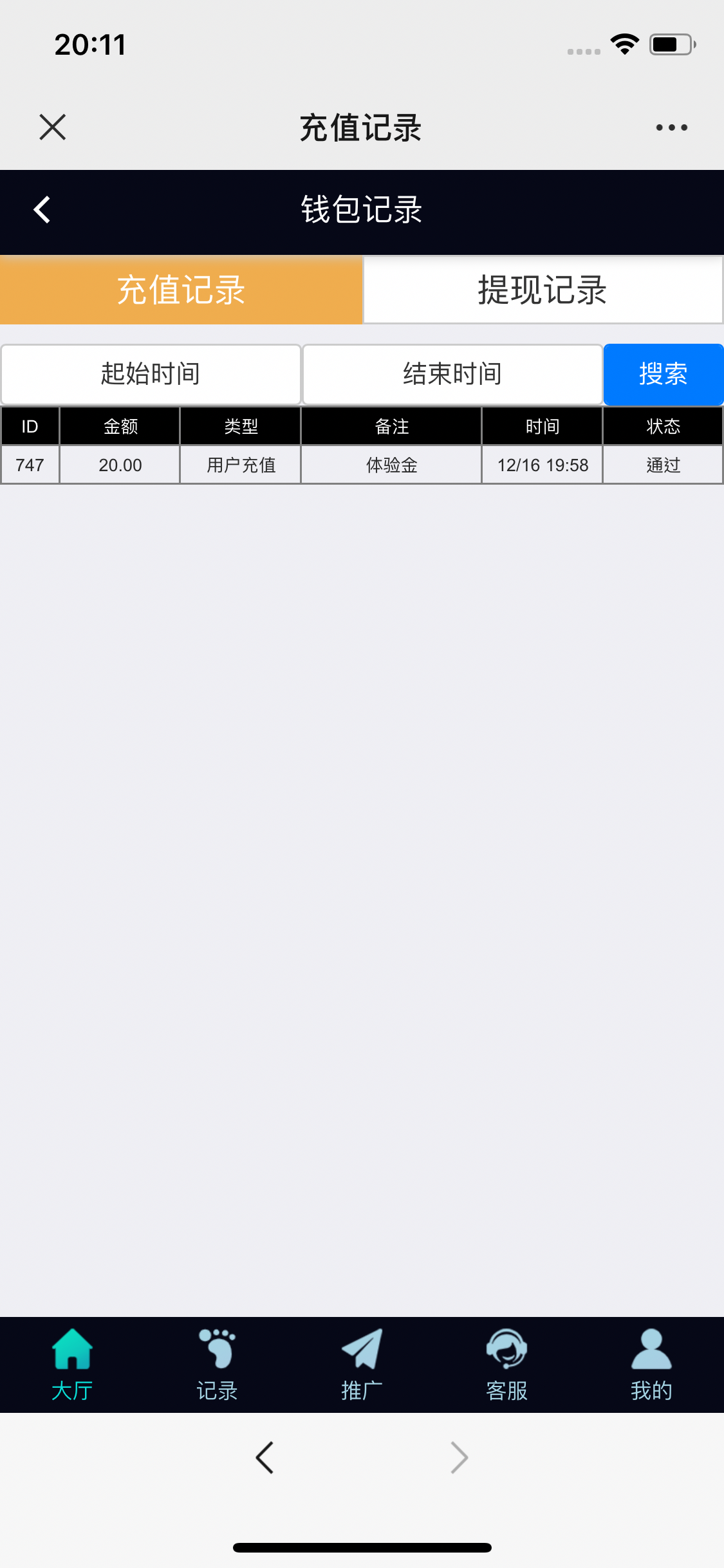 自己提交体验金20,打200下20