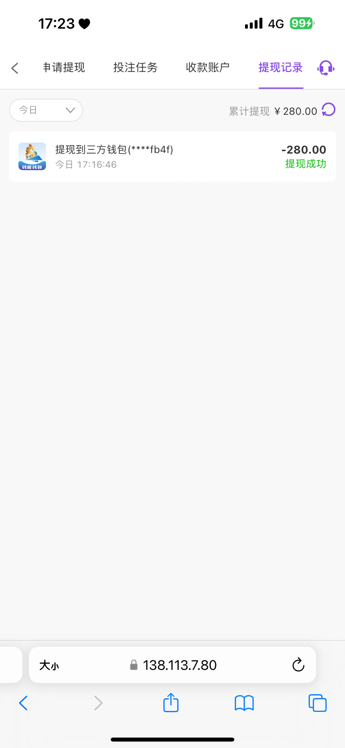 提了280不知道能不能到账